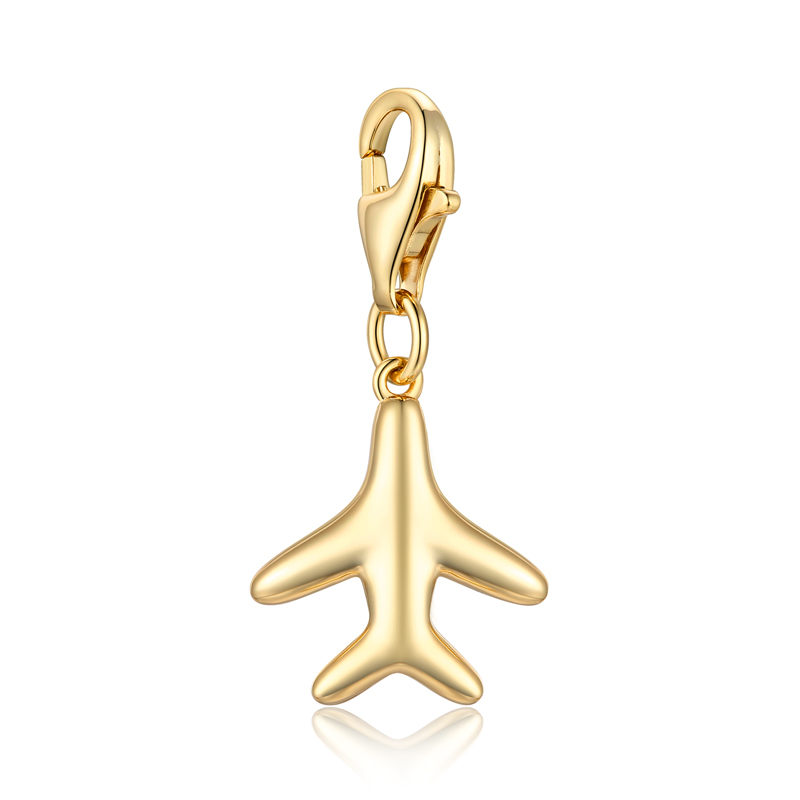 Charm Einhänger Flugzeug Silber 925/000 vergoldet