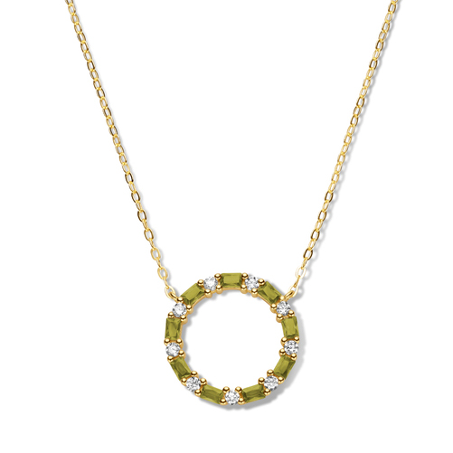 Collier Kreis mit 18 Zirkonia weiß/olivgrün Silber 925/000 vergoldet