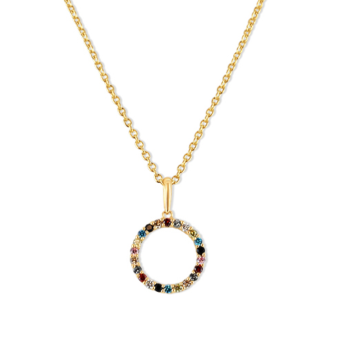 Collier Kreis mit 22 bunten Zirkonia Gold 585/000