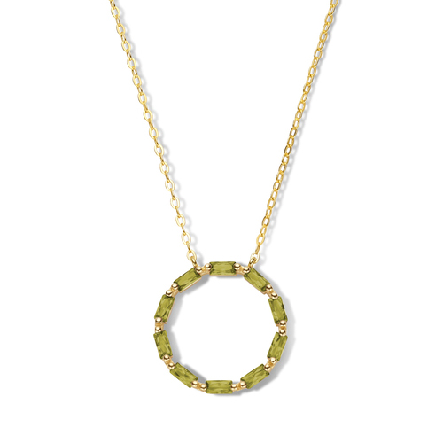 Collier Kreis mit 10 Zirkonia Olivgrün in Baguetteschliff Silber 925/000 vergoldet