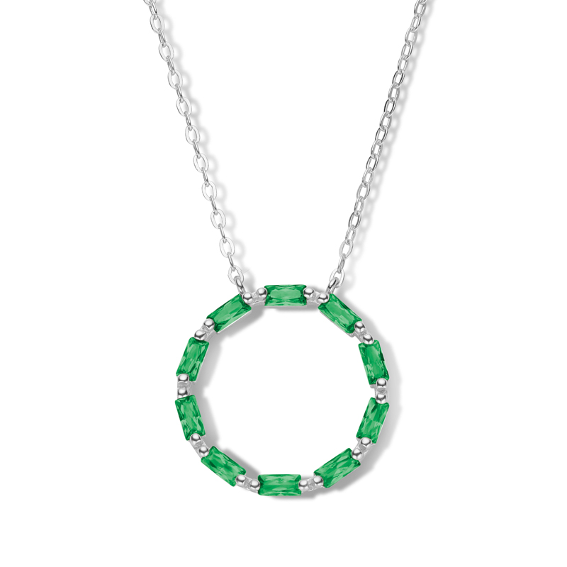 Collier Kreis mit 10 Zirkonia smaragdgrün in Baguetteschliff Silber 925/000 rhodiniert
