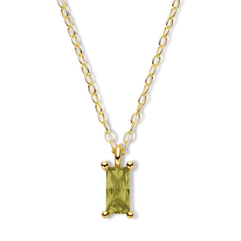 Collier Zirkonia in Olivgrün mit Baguetteschliff 6x3mm Silber 925/000 vergoldet