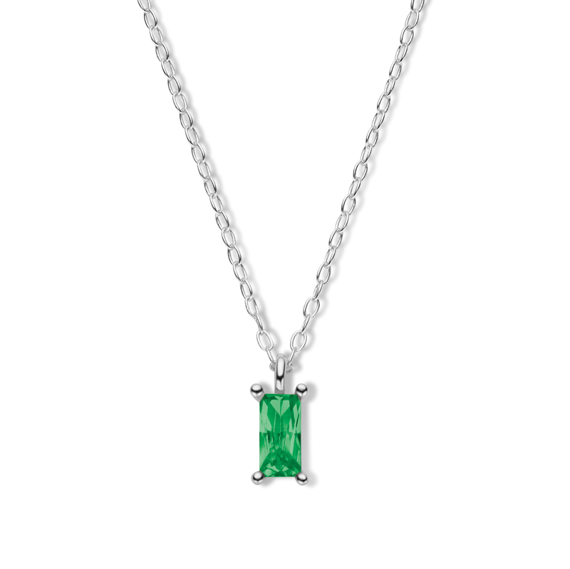 Collier Zirkonia in smaragdgrün mit Baguetteschliff 6x3mm Silber 925/000 rhodiniert
