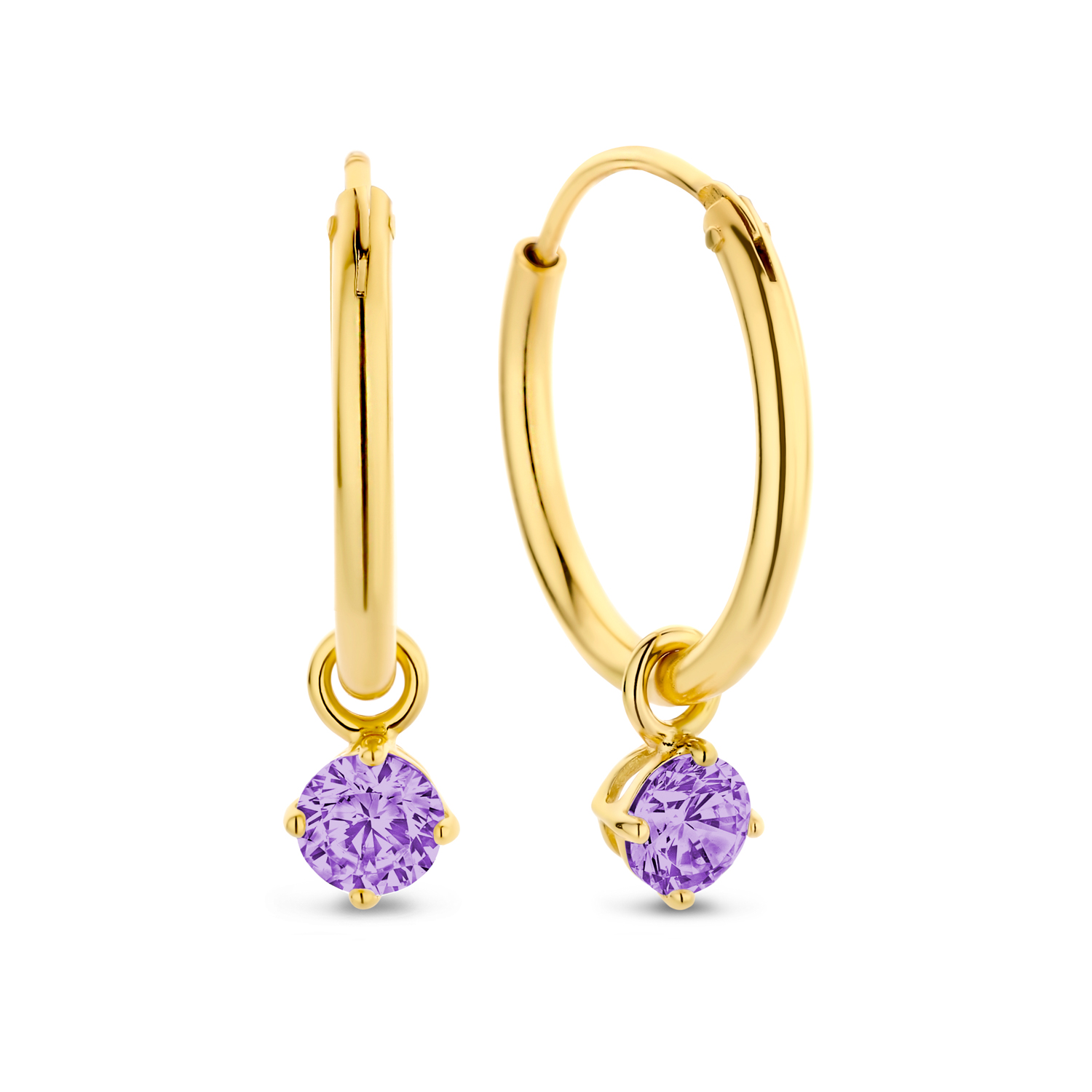 Creolen Ø 15mm mit Anhänger Zirkonia lila 4mm Silber 925/000 vergoldet