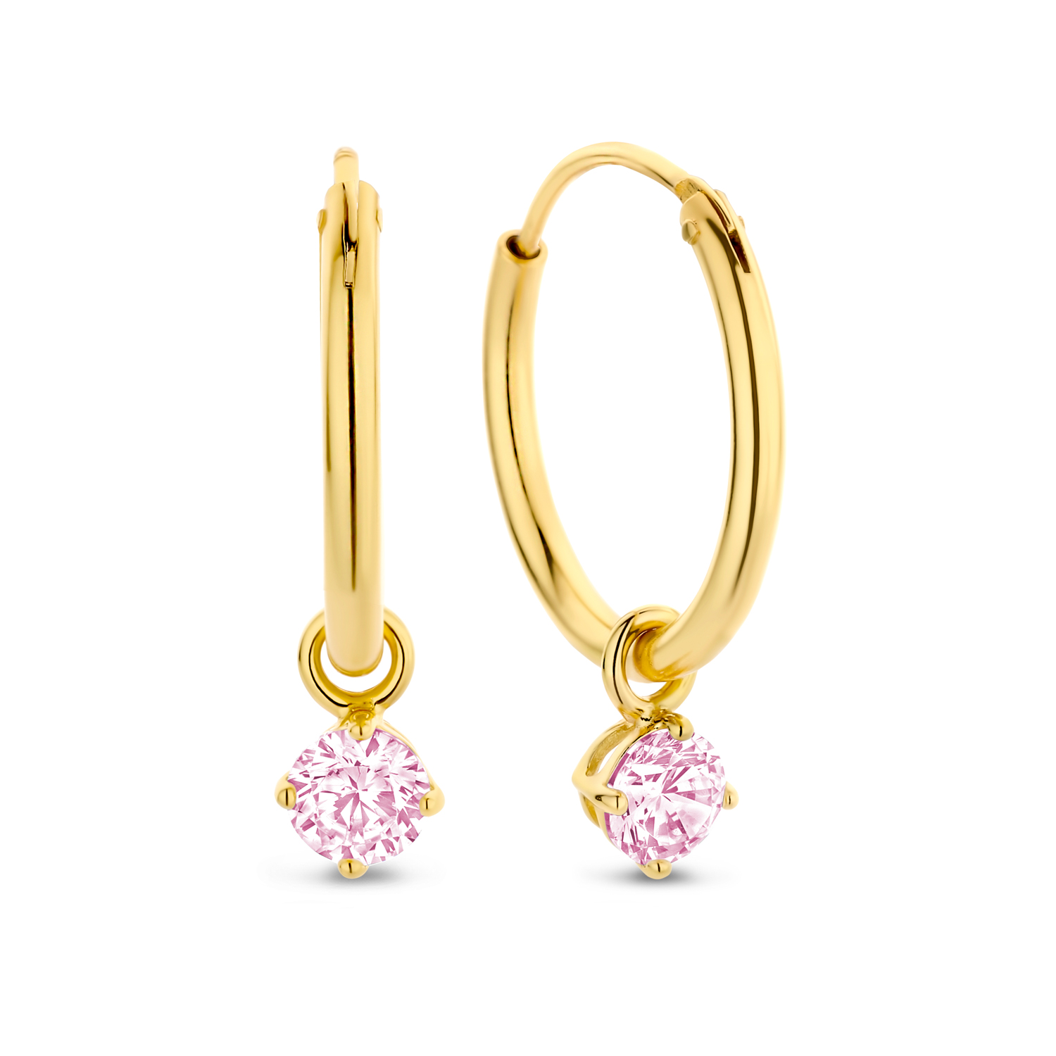 Creolen Ø 15mm mit Anhänger Zirkonia pink 4mm Silber 925/000 vergoldet