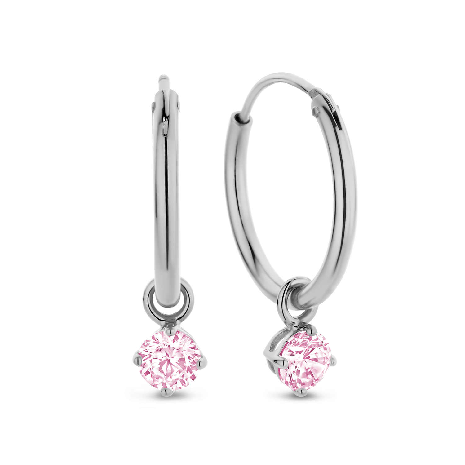 Creolen Ø 15mm mit Anhänger Zirkonia pink 4mm Silber 925/000 rhodiniert