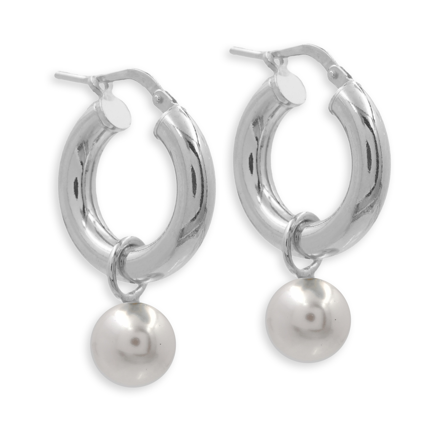 Creolen Ø 18mm mit MOP Perle 8mm Silber 925/000 rhodiniert