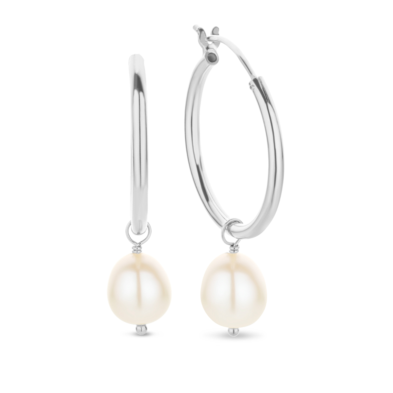 Creolen 25/2mm mit SW-Zuchtperlen Silber 925/000