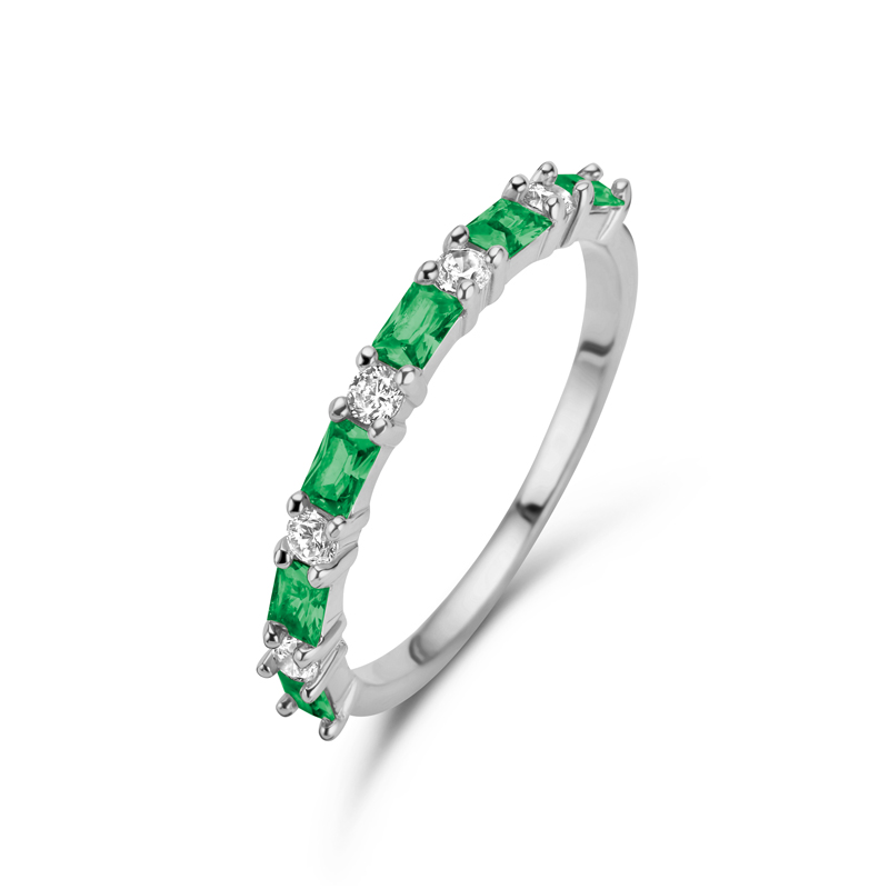 Damenring 11 Zirkonia weiß/grün Silber 925/000 rhodiniert