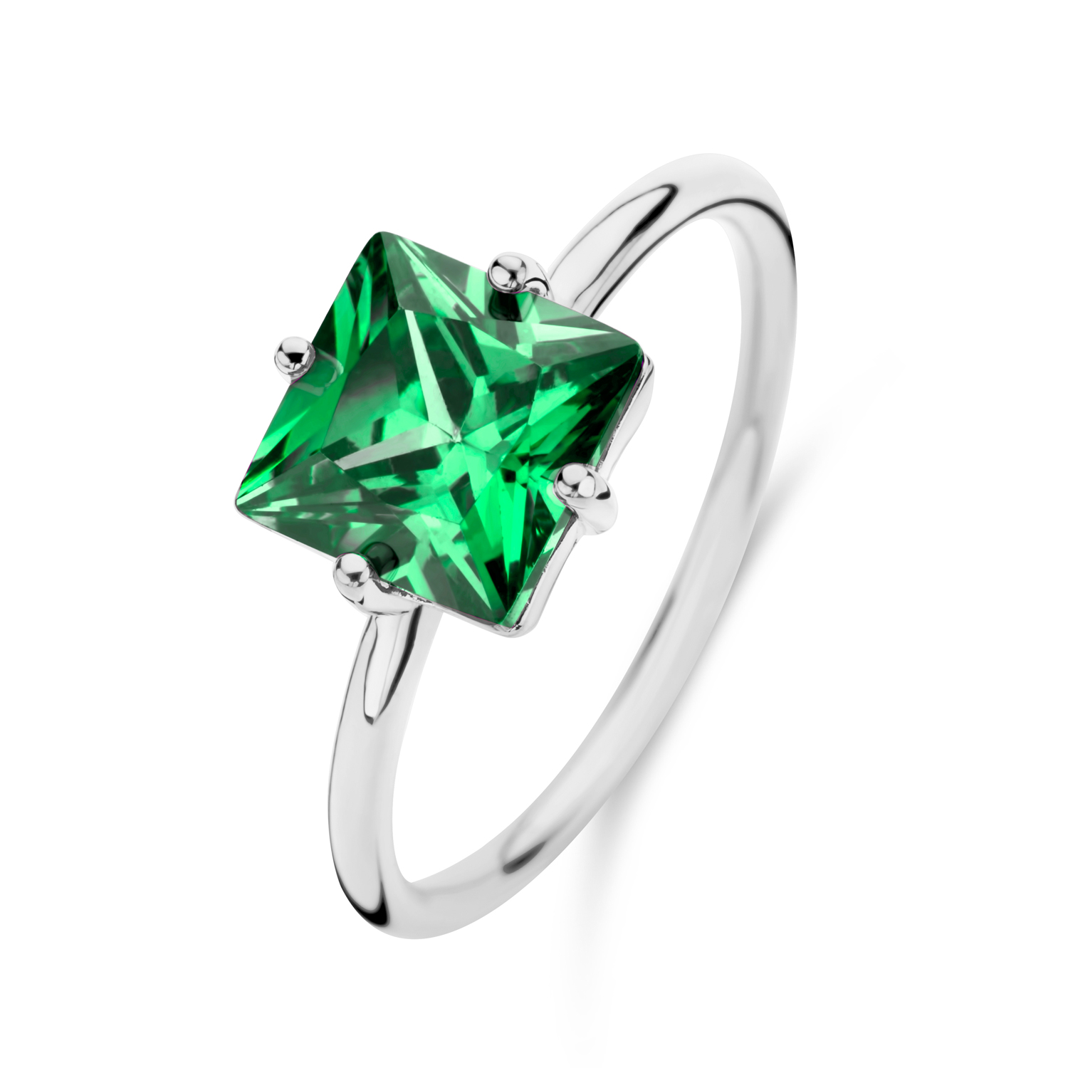 Damenring mit Zirkonia 8x8mm Smaragd Silber 925/000