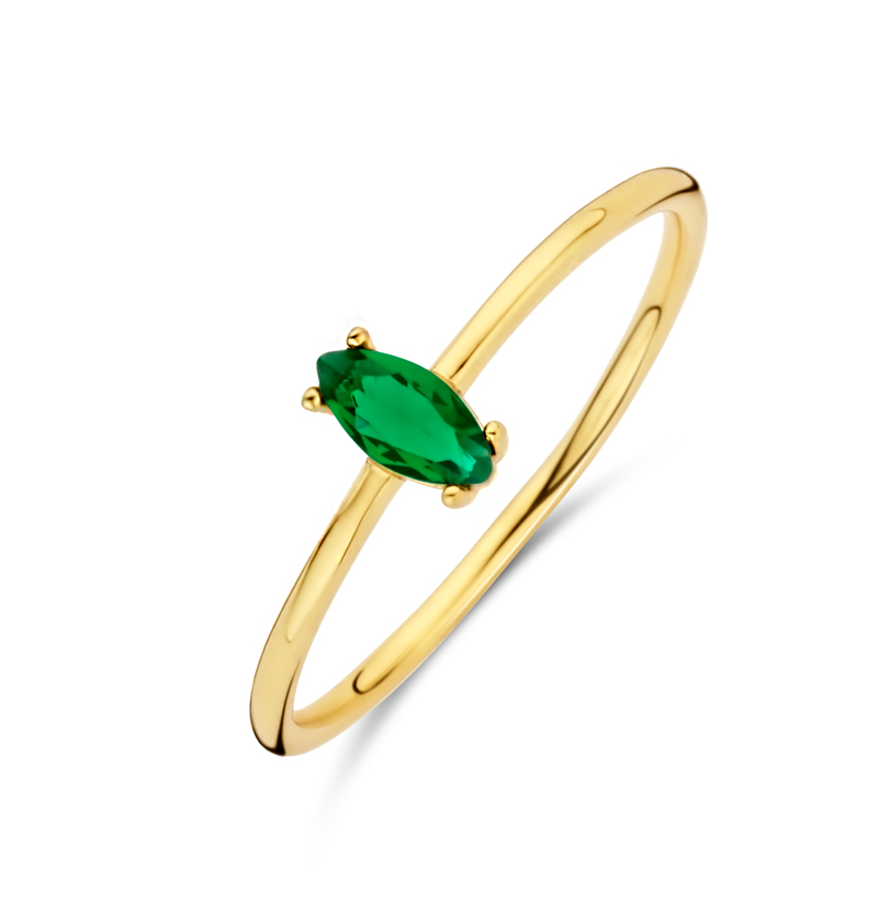Damenring mit Zirkonia smaragdgrün 6x3mm Silber 925/000 vergoldet