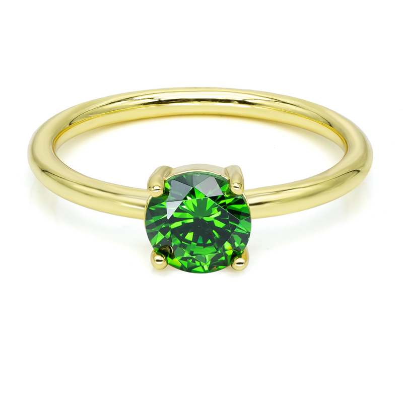 Damenring mit Zirkonia rund 6mm Smaragd Silber 925/000 vergoldet