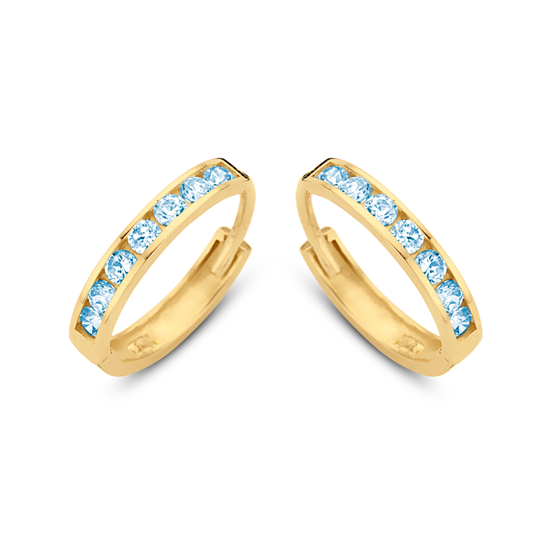 Klappcreolen 14 Zirkonia aqua 11/1.8 mm Gold 585/000