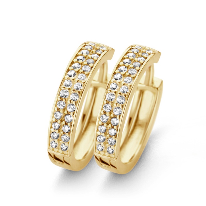 Klappcreolen 16/3.5mm mit 52 Zirkonia Echt Silber 925/000 vergoldet