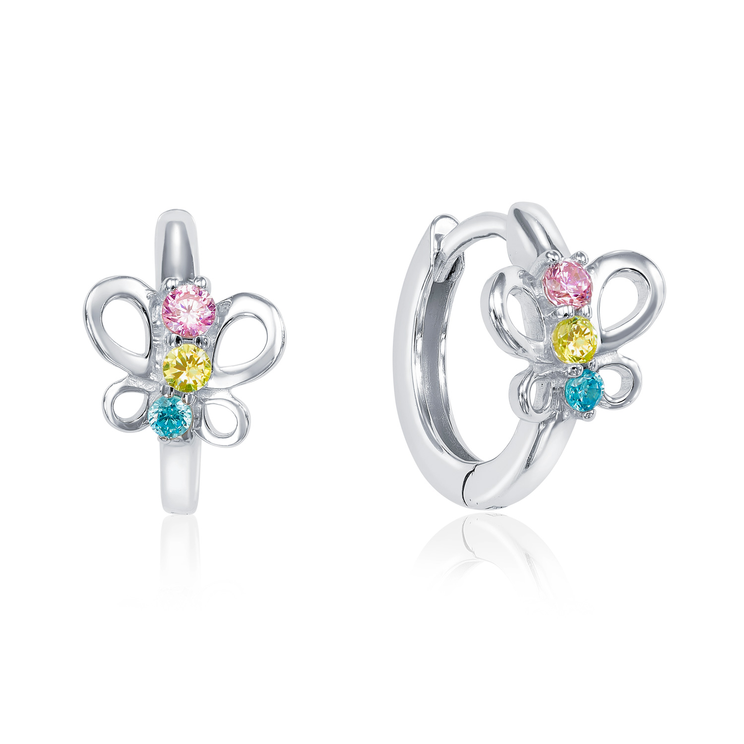Klappcreolen Schmetterling mit 6 Zirkonia bunt Silber 925/000 rhodiniert