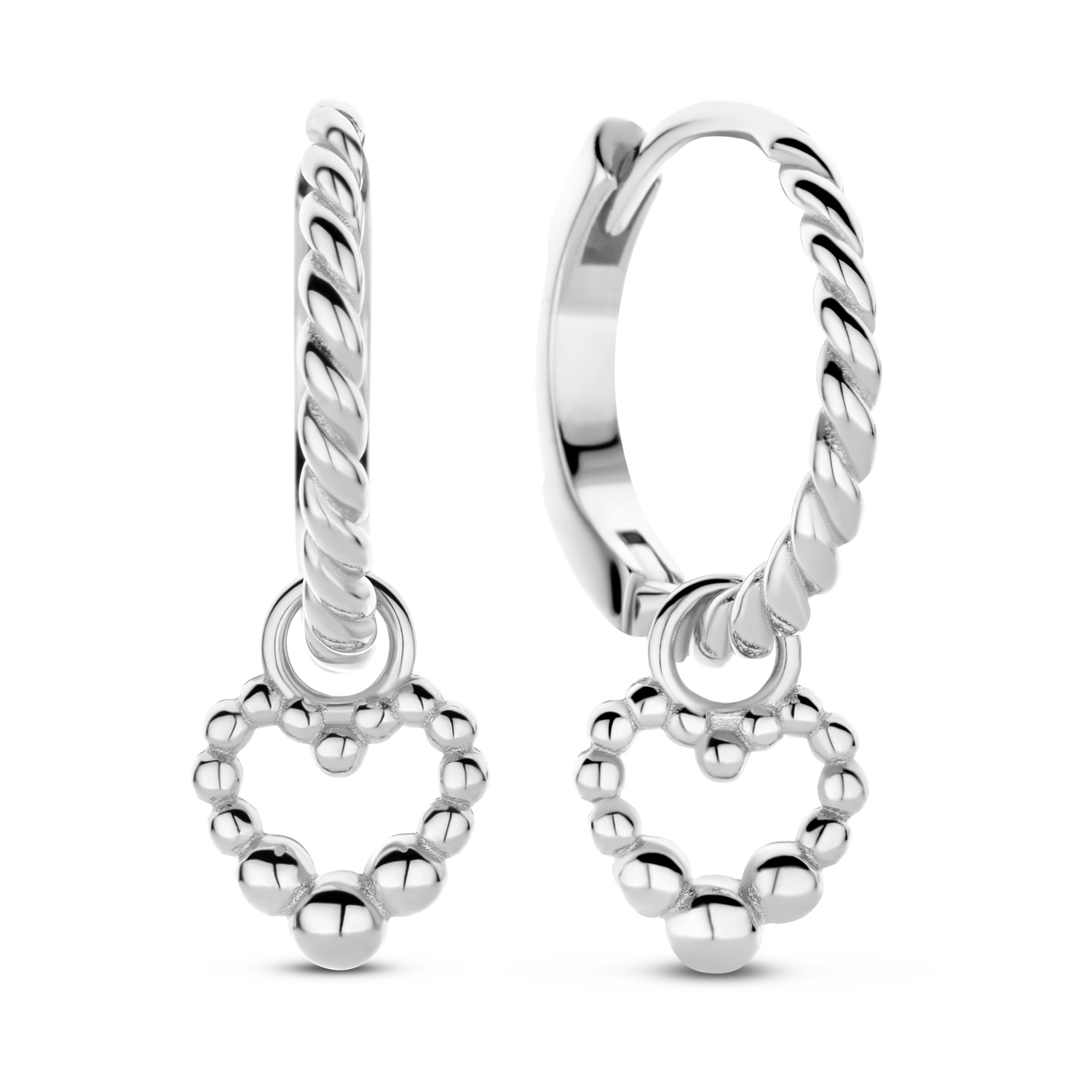 Klappcreolen twisted mit Behang Herz Silber 925/000 rhodiniert