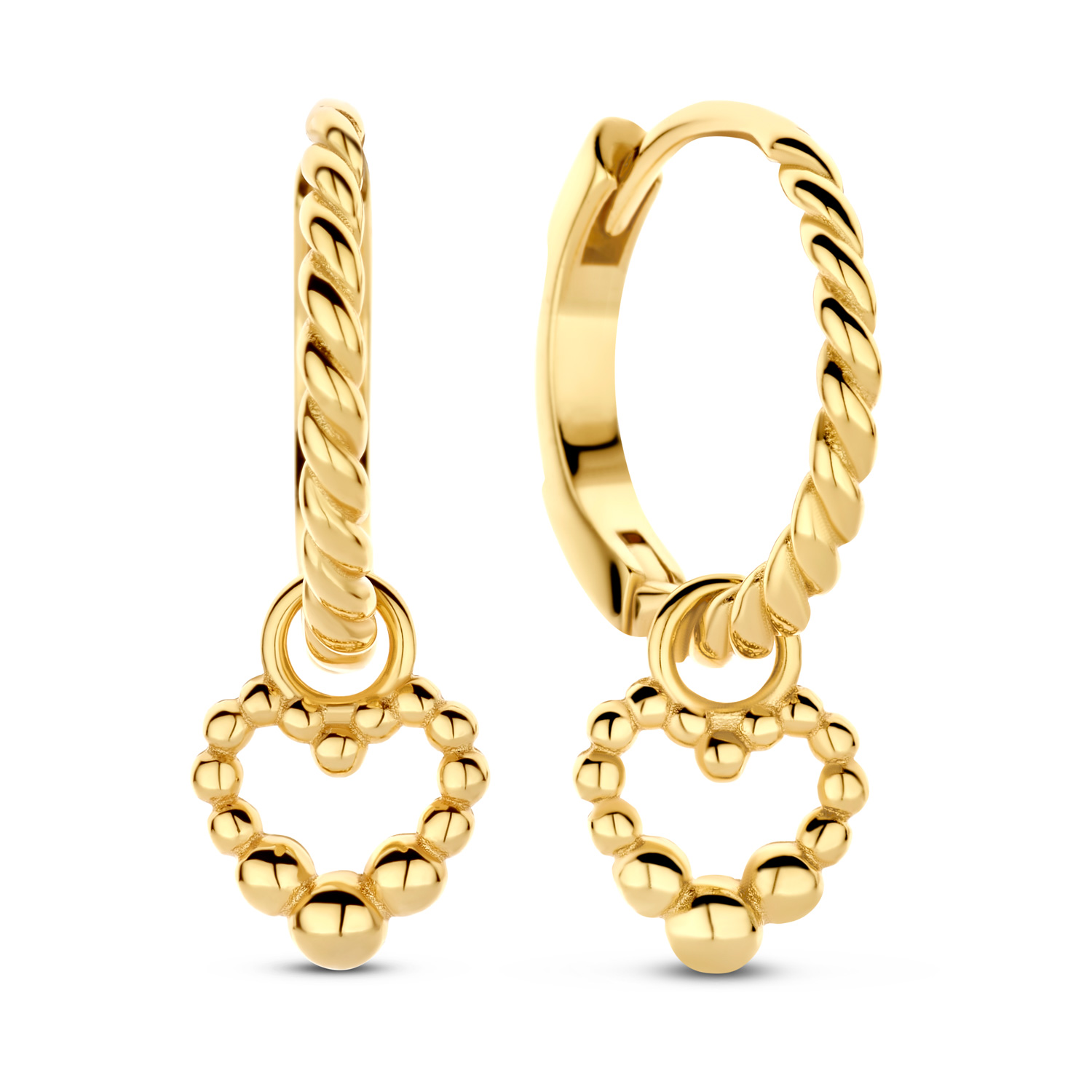 Klappcreolen twisted mit Behang Herz Silber 925/000 vergoldet