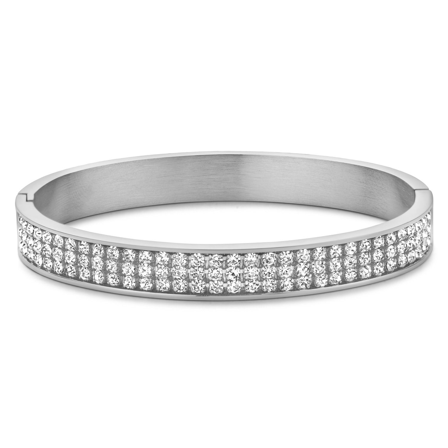 Lovebird Armreif 3 rhg. Kristall weiß Edelstahl IPS