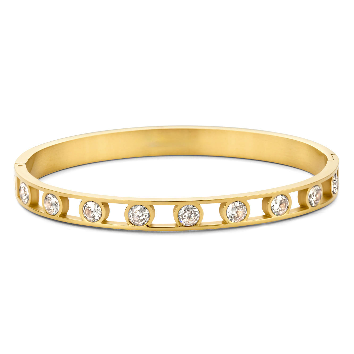 Lovebird Armreif mit 9 Zirkonia weiß Edelstahl IPG