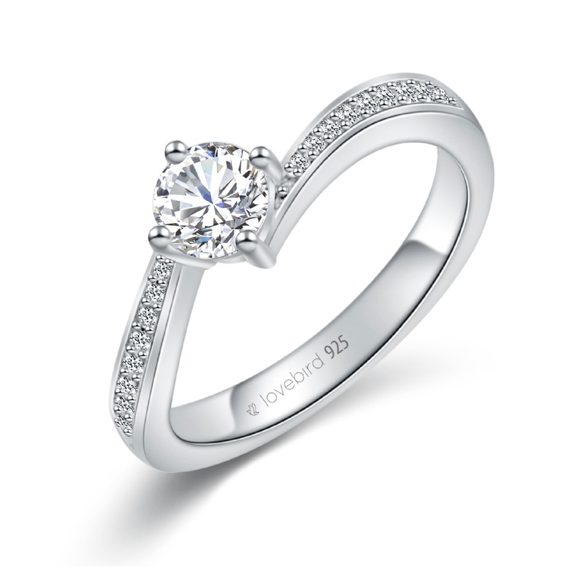 Lovebird Damenring mit 19 Zirkonia 101 Facetten Silber 925/000