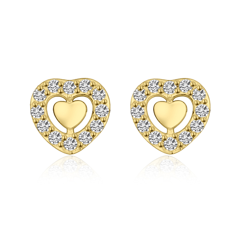 Lovebird Ohrstecker Herz mit 24 Zirkonia Silber 925/000 vergoldet