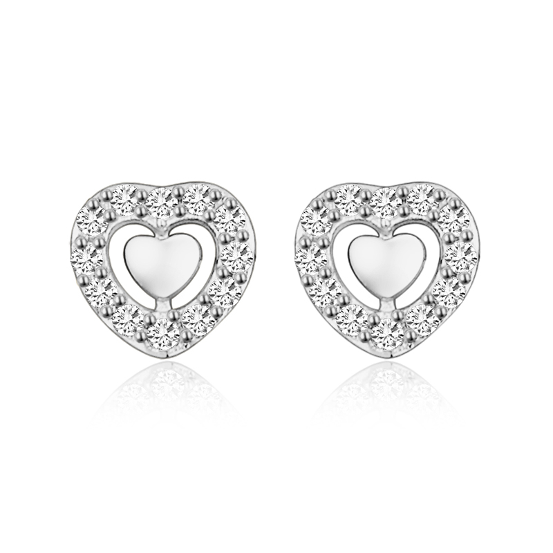 Lovebird Ohrstecker Herz mit 24 Zirkonia Silber 925/000