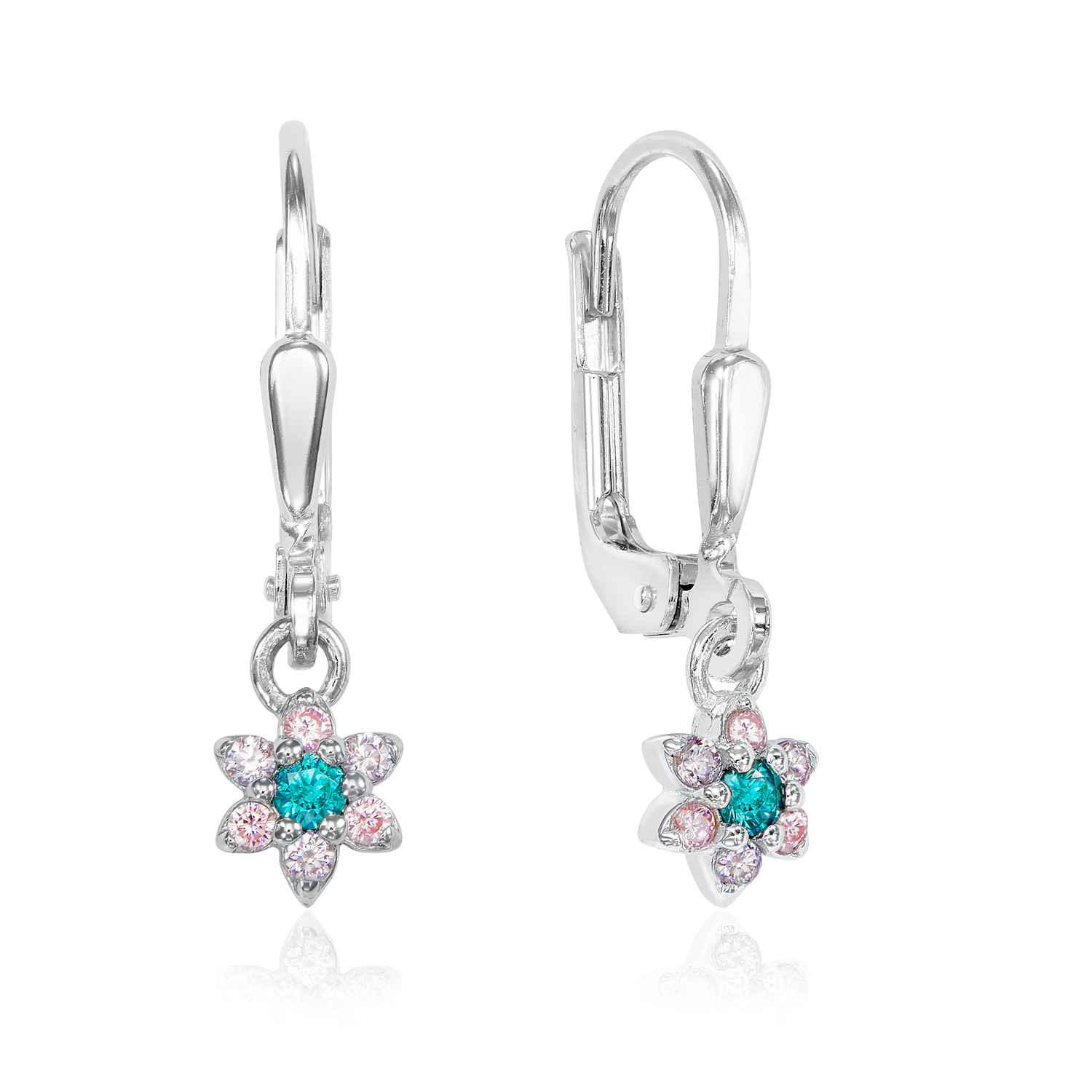 Ohrhänger Blume mit 14 Zirkonia bunt Silber 925/000 rhodiniert