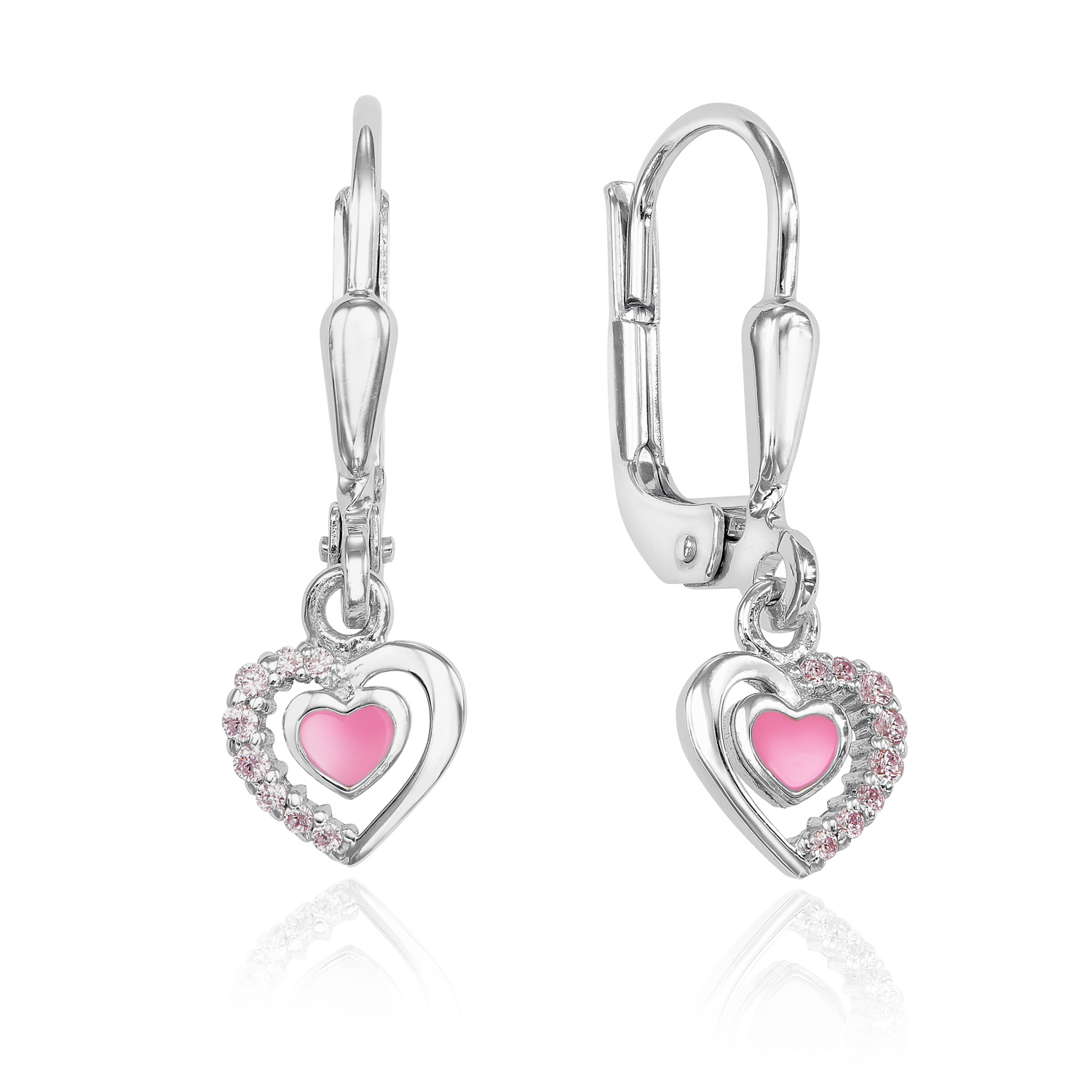 Ohrhänger Herz mit 16 Zirkonia/Lack pink Silber 925/000 rhodiniert