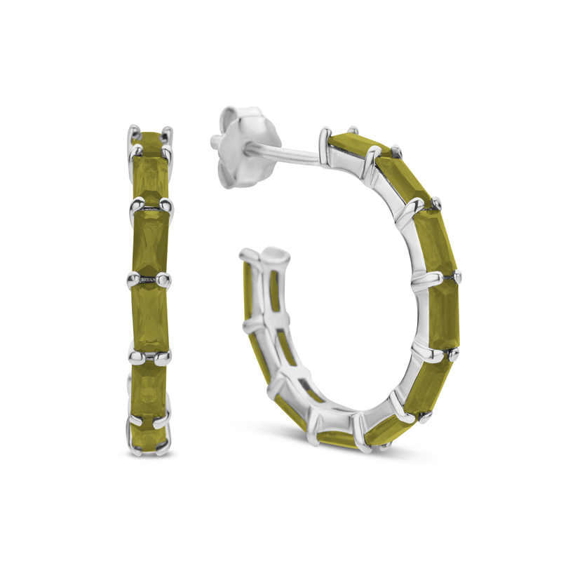 Ohrstecker Creolen mit 20 Zirkonia olivgrün