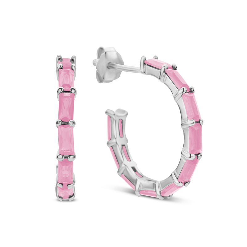 Ohrstecker Creolen mit 20 Zirkonia pink
