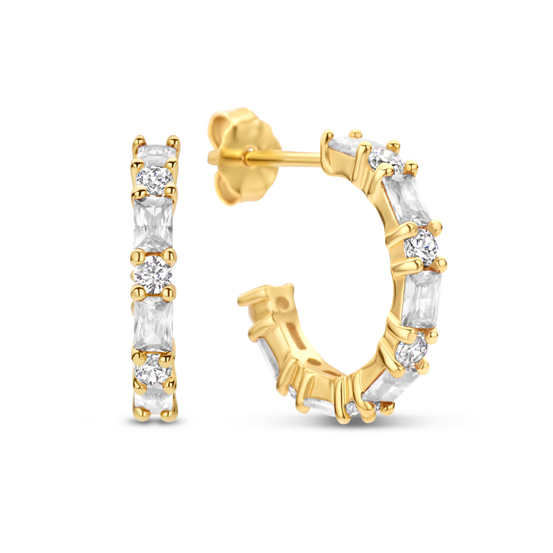 Ohrstecker Creolen Ø 14mm mit 24 Zirkonia Silber 925/000 vergoldet