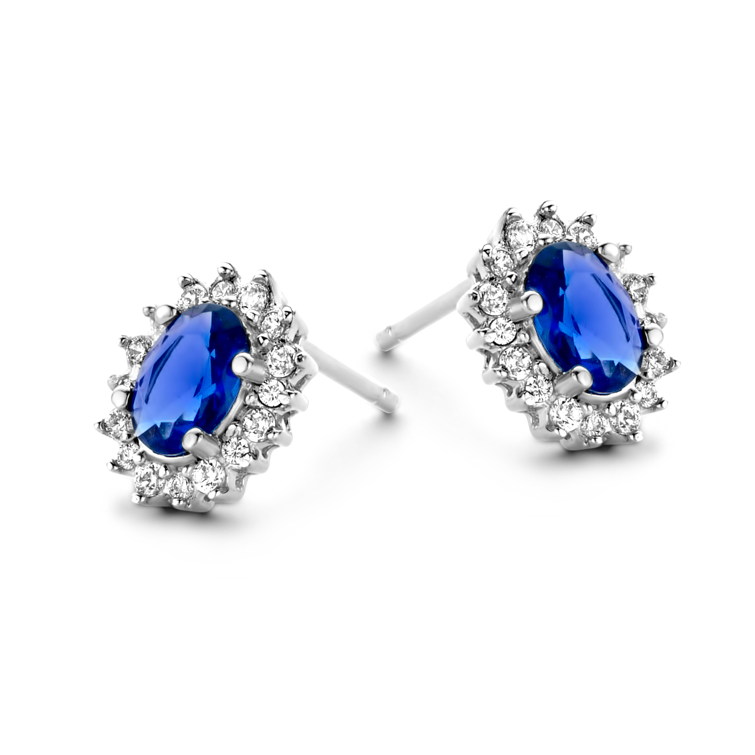 Ohrstecker mit 26 Zirkonia weiß/blau Silber 925/000 rhodiniert