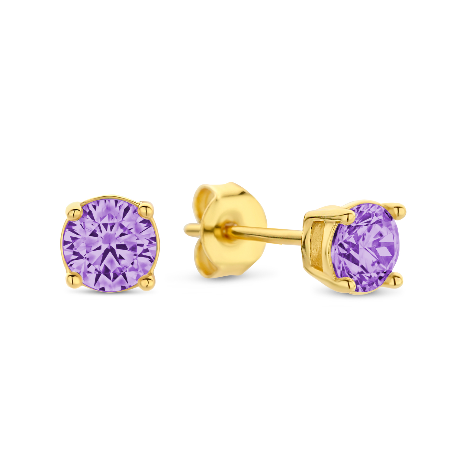 Ohrstecker mit Zirkonia lila Ø 4mm Silber 925/000 vergoldet