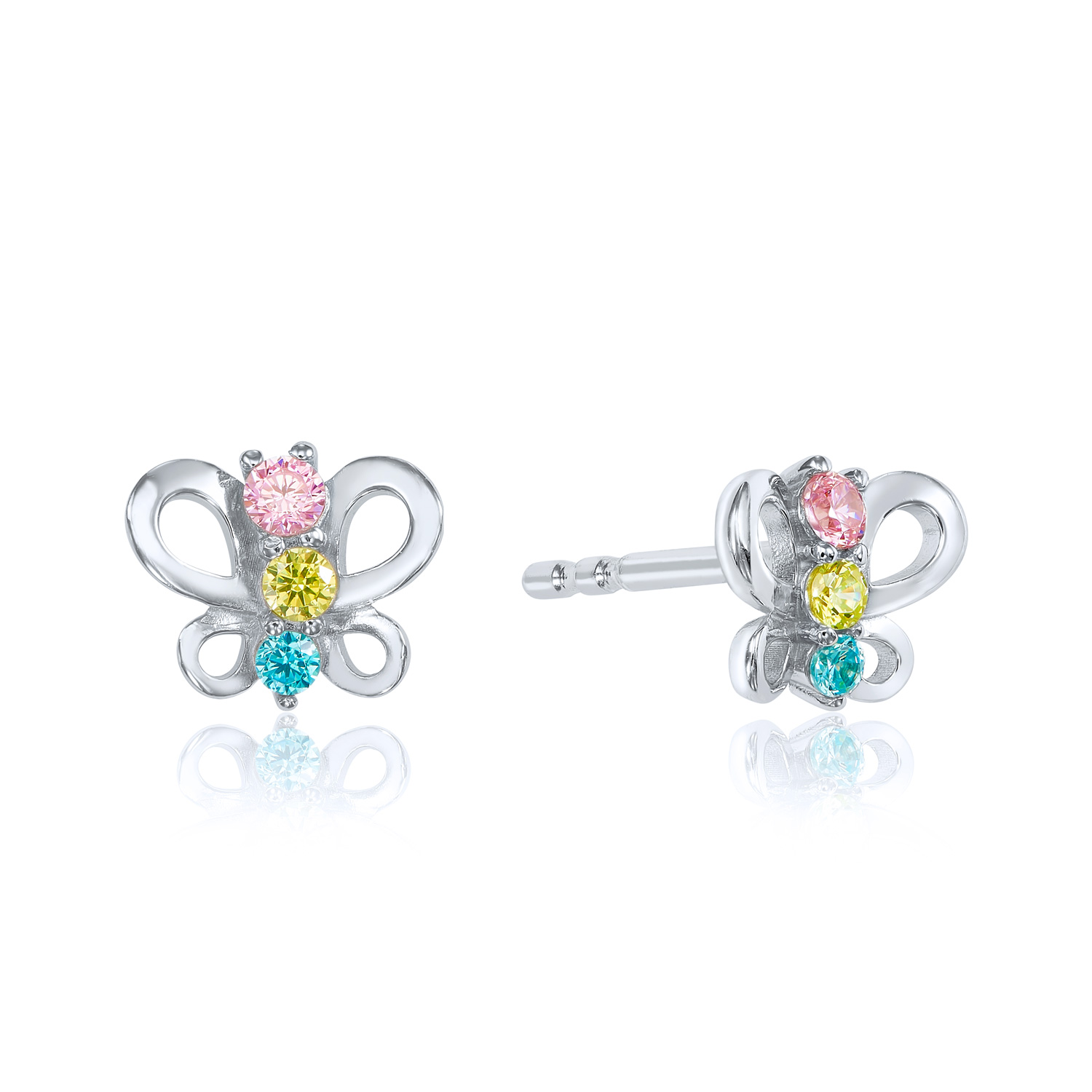 Ohrstecker Schmetterling mit 6 Zirkonia bunt Silber 925/000 rhodiniert